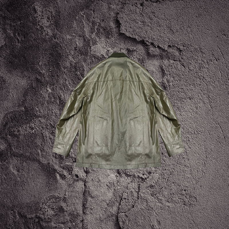 Описание: «Ретро-зелень» — куртка цвета воскового хаки. Тонкий PU с «истёртным» покрытием отливает бронзой при встрече со светом, словно лондонский туман на киноплёнке. Стойка-трансформер: поднята — защищает от ветра, опущена — открывает линию ключиц, мгновенно переключаясь между мужским шармом и женственностью. Планка на однобортных антикварных пуговицах цвета золотой бронзы застёгивается с характерным щелчком, как замки на дорожных сундуках прошлого века. Симметричные накладные карманы с закруглёнными углами и клапанами на мини-пуговицах одновременно декоративны и практичны: вмещают и билеты, и истории путешествий. Разрезы на рукавах с такими же бронзовыми кнопками: расстёгнуты — свободный отворот, застёгнуты — аккуратный облегающий крой. Спинка с одинарной складкой и слегка расширенной линией плеча корректирует осанку и не мнётся при долгом сидении. Длина ниже линии таза вытягивает силуэт: с джинсами высокой талии — 70-е улицы, с атласной юбкой — вечеринка в ретро-стиле. Лёгкий восковой материал защищает от ветра и лёгкого дождя: весной и осенью носите как верхний слой, зимой — поверх тонкого свитера или шарфа из кашемира. Наденьте её — и городской шум превращается в немой кинофильм.